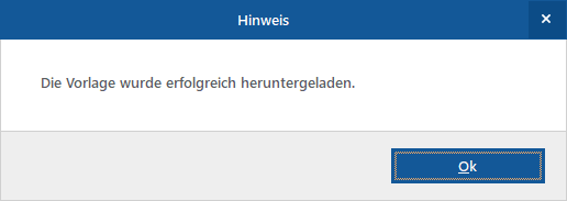 Anschließend erscheint der Hinweis "Die Vorlage wurde erfolgreich heruntergeladen.". Diesen kannst du mit "OK" bestätigen und das Fenster "Schließen".